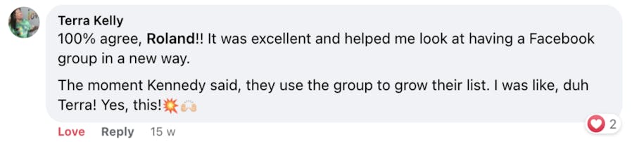 That’s the power of a highly-engaged Facebook group that turns into a close-knit community and joins your email list.