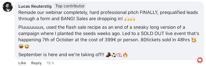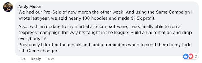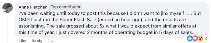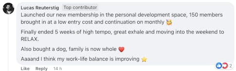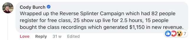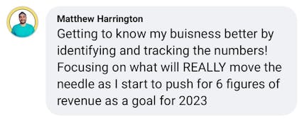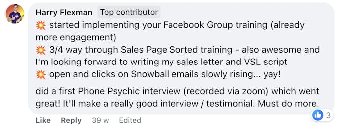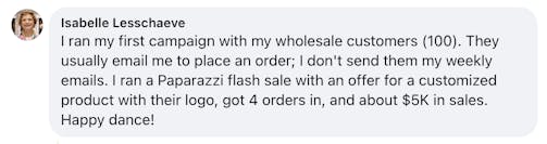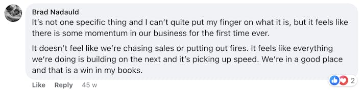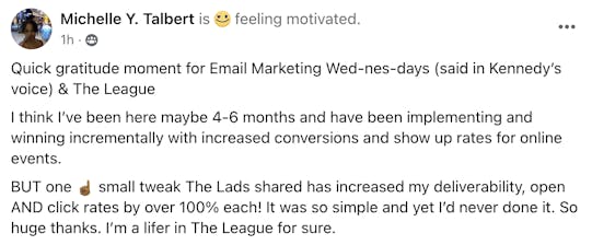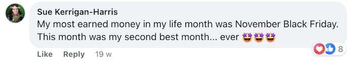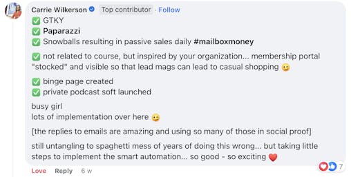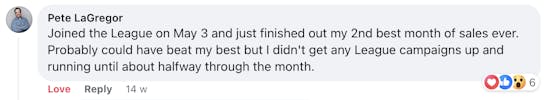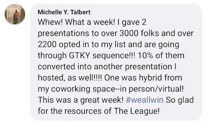 These are screenshots of what these folks have said about their personal experience. We’re not implying your results, and no one should because everyone’s business and ability to implement is unique to them. But we do want to celebrate the hard work that these people are putting in!