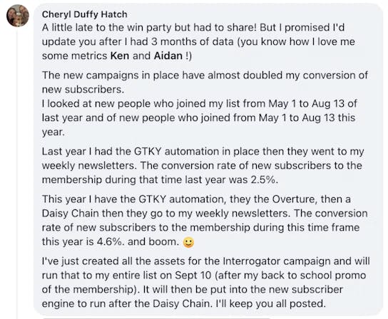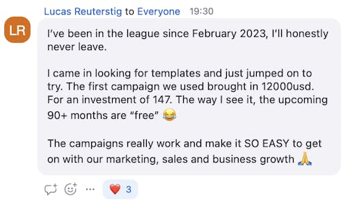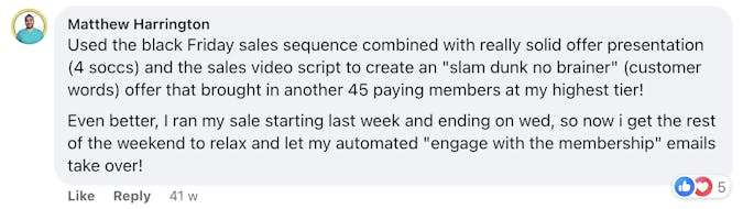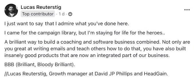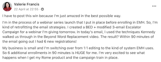 "The campaigns are easy to implement, because not only these guys share what THEY use in their business, but they explain the psychology and thinking behind the phrases and paragraphs, so I can easily adapt it to my business. And I’m not even a course creator, membership site owner, or coach!