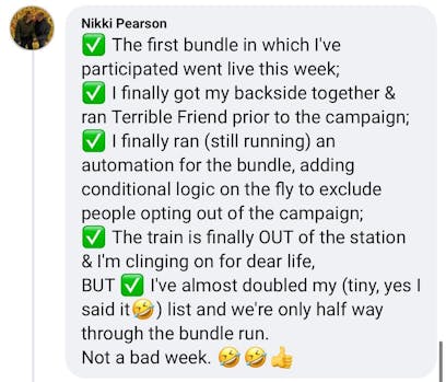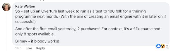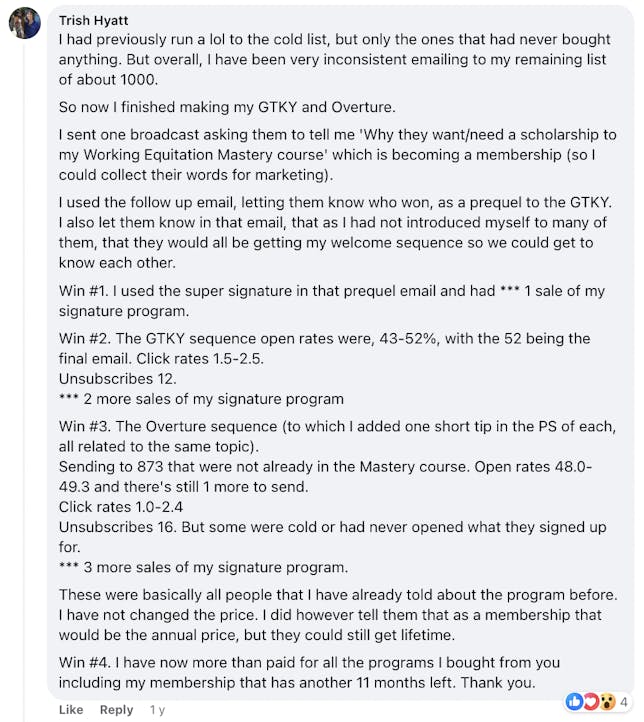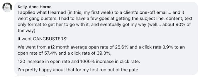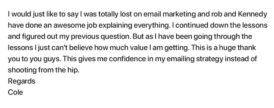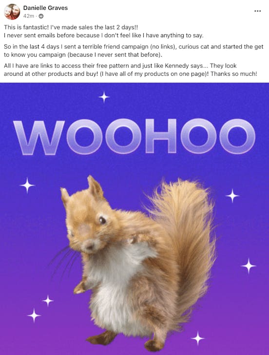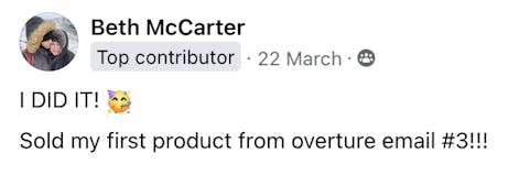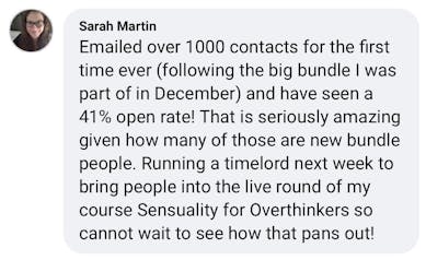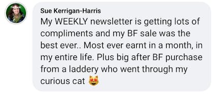 Plus, I've made my first sales purely from email, thanks to their strategies! This has given me the confidence and skills to tackle my email marketing with newfound enthusiasm and strategy".
