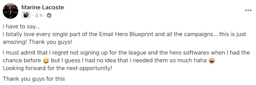 "Thinking of joining The Email Hero Blueprint? Just do it. They make email marketing fun & enjoyable.
